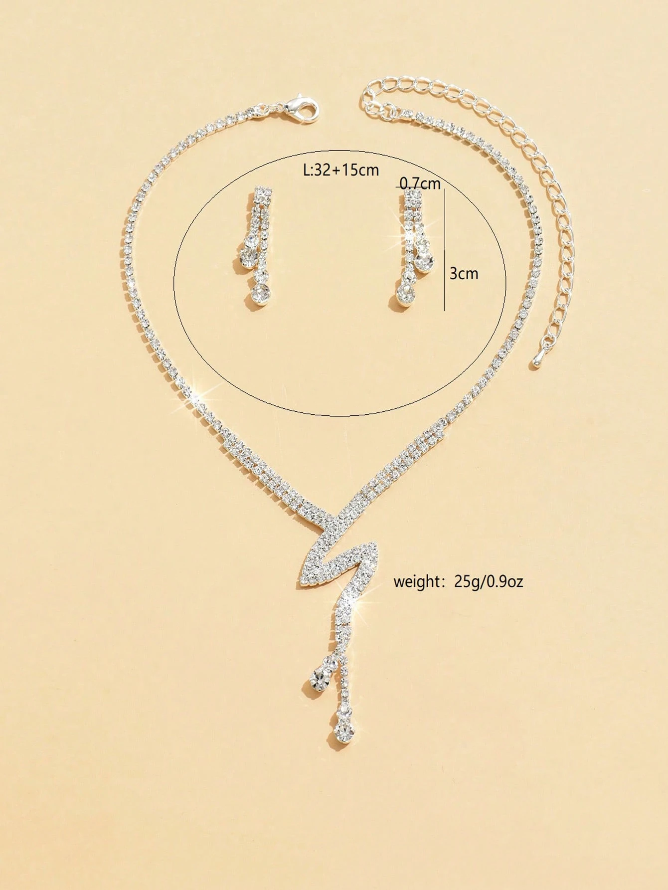 Matching the necklace’s graceful silhouette, the earrings add a delightful finishing touch. With two delicate dangling strands on each earring, finished with shimmering rhinestones, the movement creates an enchanting shimmer with every turn. Lightweight and easy to wear, the earrings are both pretty and sophisticated — perfect for adding a splash of sparkle without being overwhelming.