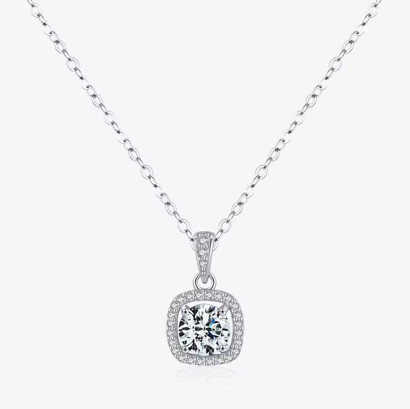 The pendant's size—1.5 cm high and 1.0 cm wide—strikes a perfect balance between bold presence and subtle elegance. It also includes three additional crystal-worked attachment that seamlessly connect the main pendant to the sterling silver link chain, enhancing the overall design with a charming, intricate detail.