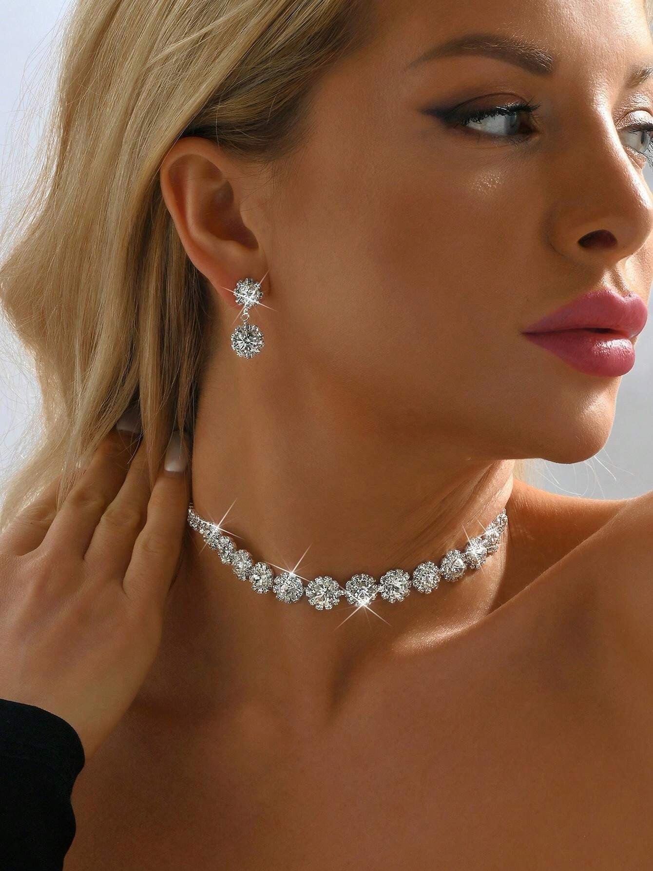 This silver-toned set is crafted from high-quality copper, offering durability and lightweight comfort. Its intricate design makes it a stunning statement piece for glamorous occasions such as weddings, parties, and formal events.