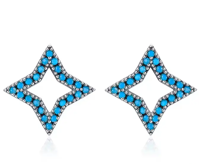 Elegant star-shaped earrings with light blue turquoise crystals for a glamorous look.
